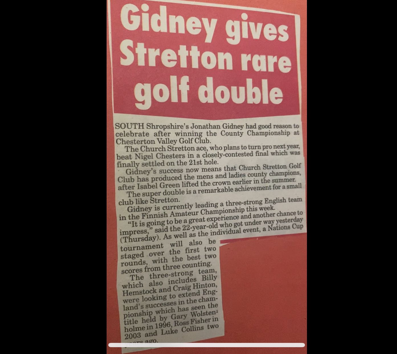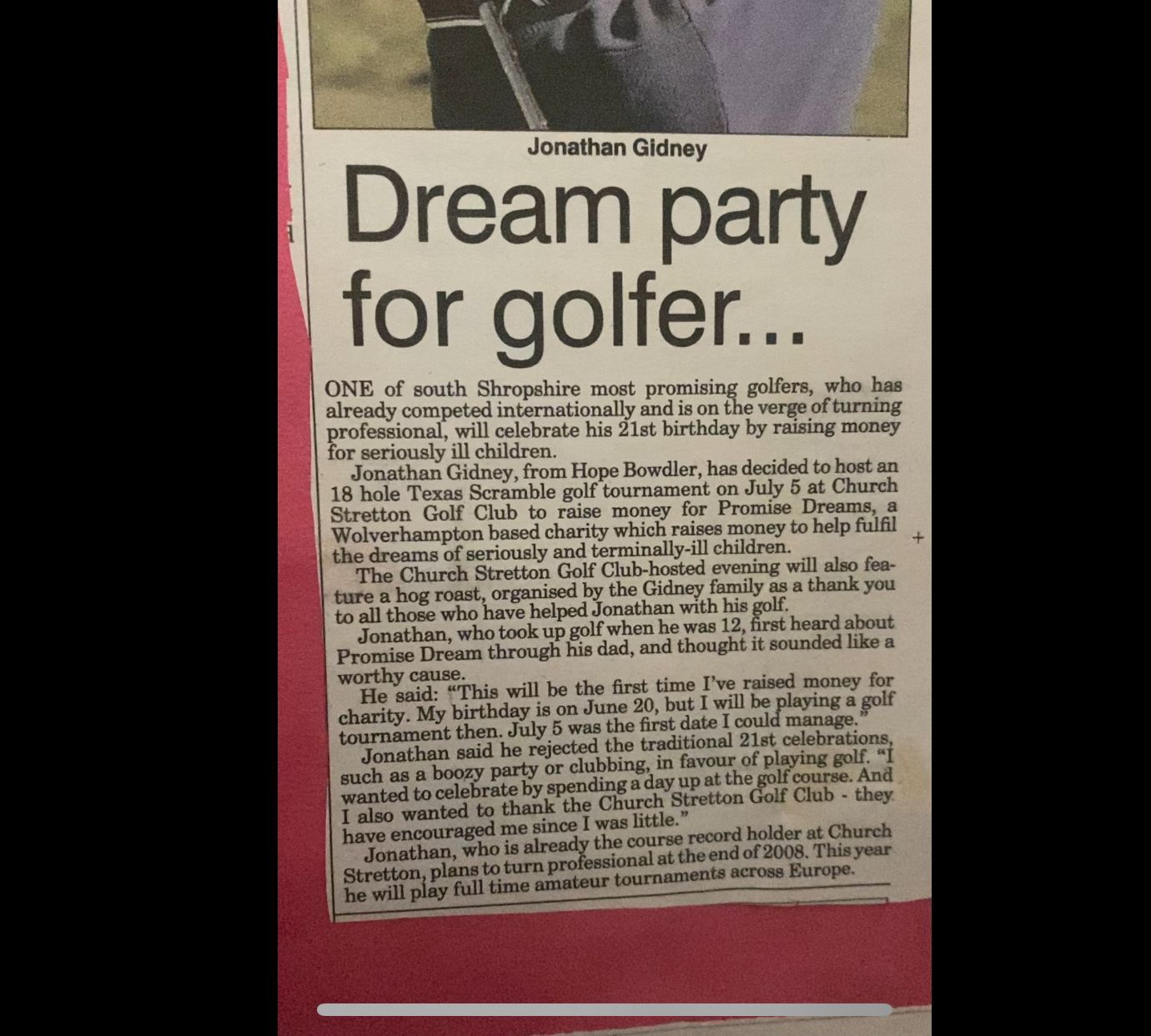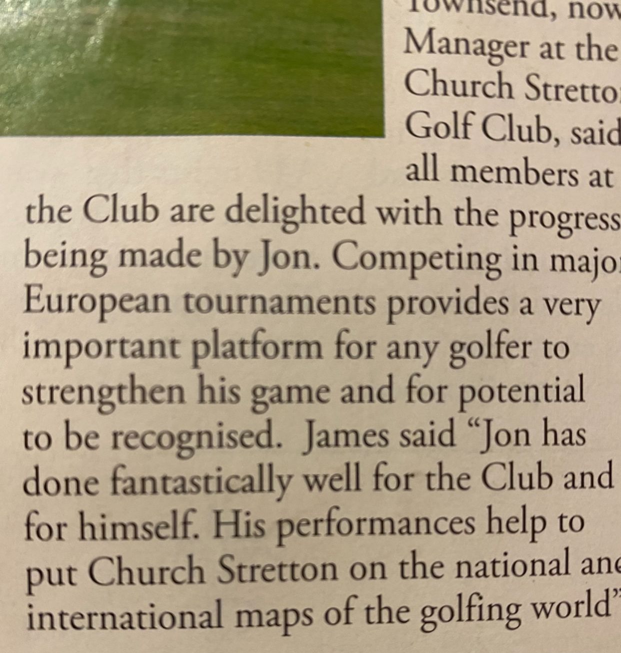 “Jon has done fantastically well for the Club and for himself. His performances help to put Church Stretton on the national and international maps of the golfing world.”