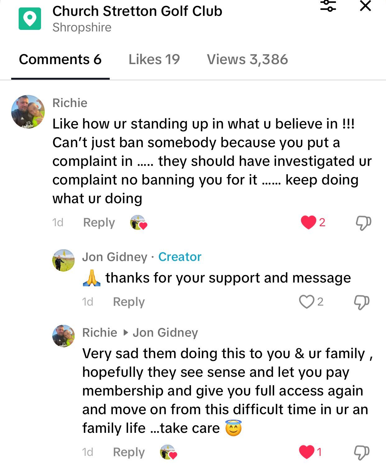 They are currently trying to ban me, and a supporter of mine, from the club, for life. There's still no misconduct from me whatsoever. My 6 year old son is also being treated very unfairly by some people at the club.