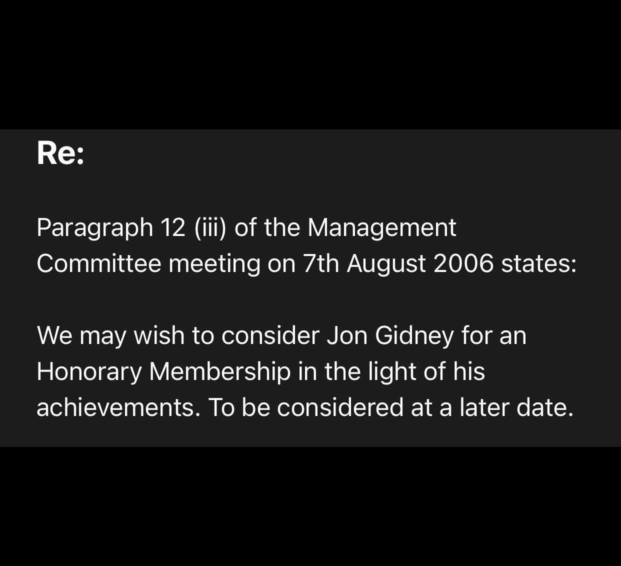 “I was shocked to learn how you’ve been treated. My contact with you was always positive. You were a real asset to the club.” (sent via email to Jon in 2016 after he was unfairly excluded)
